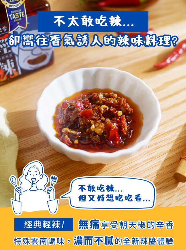 ->堅持傳承好味道,保留五十年手藝的傳統做法,口味獨特的雲南辣椒醬