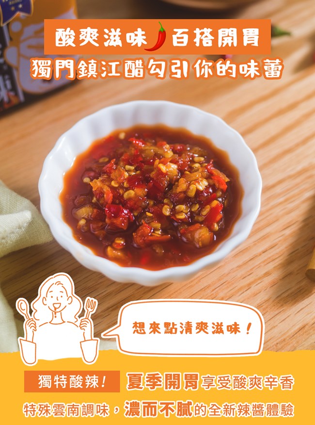 運用鎮江醋與朝天椒的搭配,微酸的口感引發味蕾更增添食慾