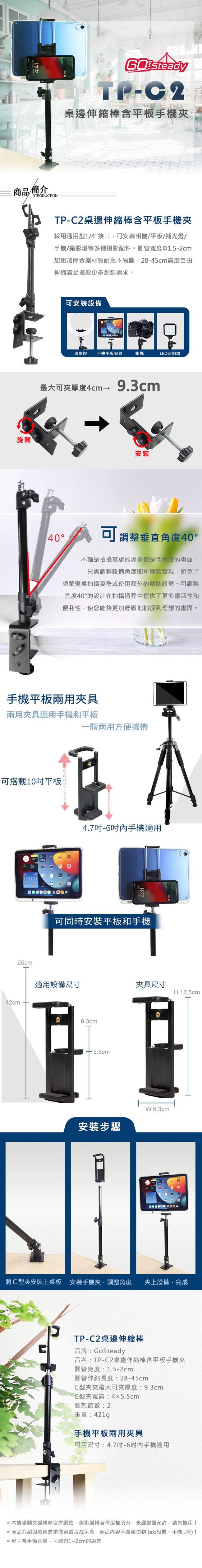 品名:TP-C2桌邊伸縮棒含平板手機夾