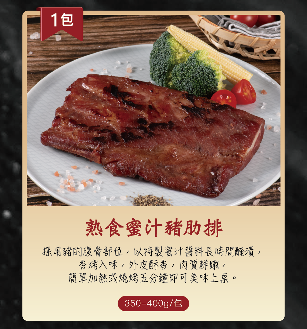 特選蜜汁豬肋排,使用烤箱/氣炸鍋,預熱約200℃烤約5-6分鐘