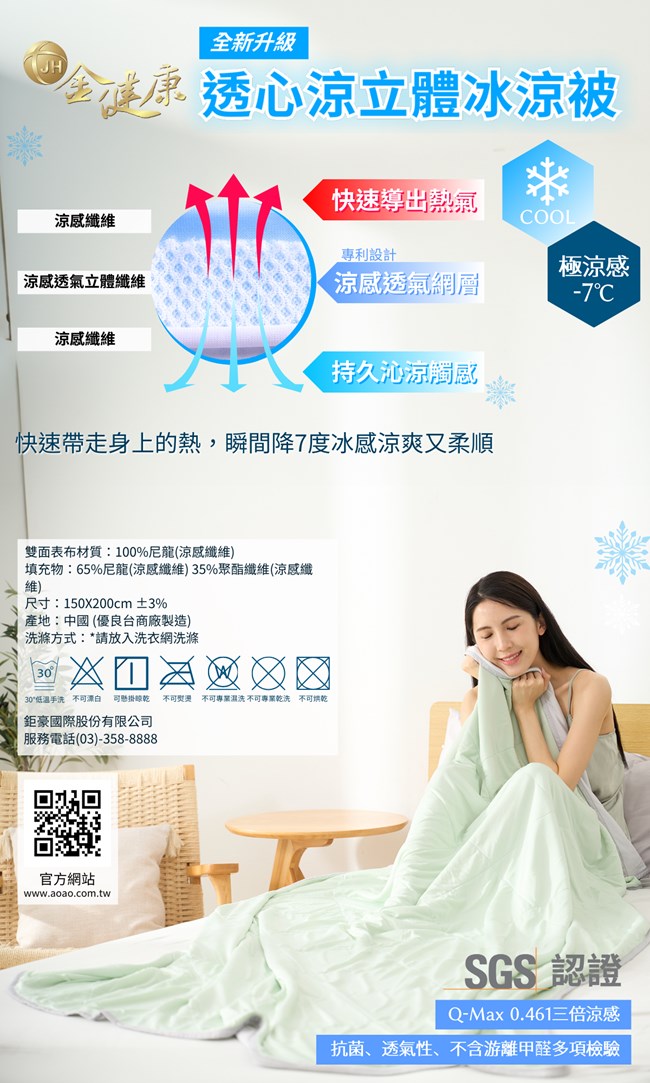【全新升級~3倍涼爽】金健康二代透心涼立體冰涼被-美