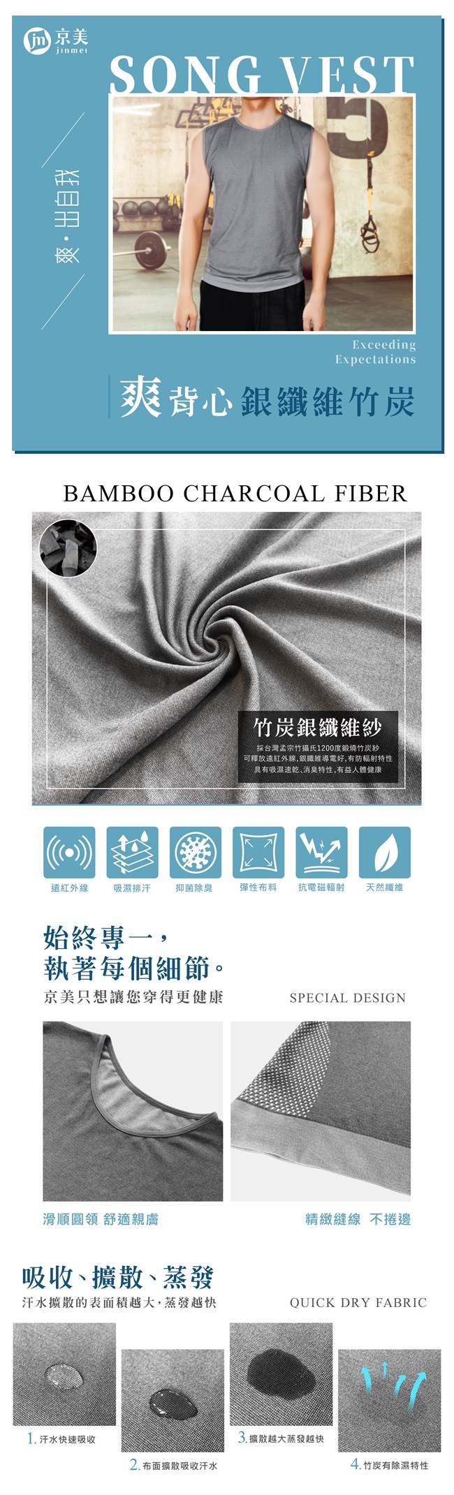 【京美】竹炭銀纖維涼爽背心4件贈按摩寬口襪2盒-美