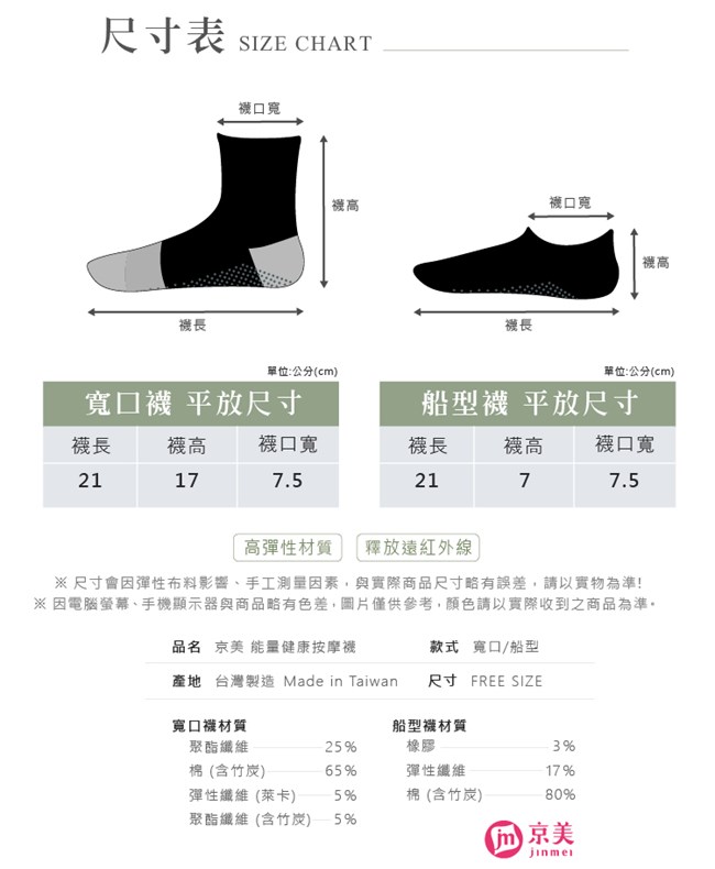 品名:【京美】肌力神器 能量健康按摩襪(寬口)