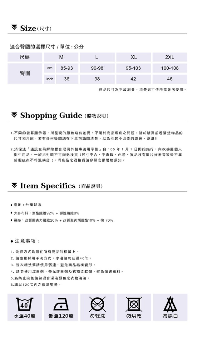 底襯運用日本纖淨技術,具有永久性銀離子殺菌功能,搭配除臭及吸濕排汗纖維,確保私密處乾爽舒適,無異味無憂慮。經SGS檢驗,銀離子殺菌除臭效果可達99%以上,對白色念珠菌等壞菌滅菌效果同樣達99%以上。
