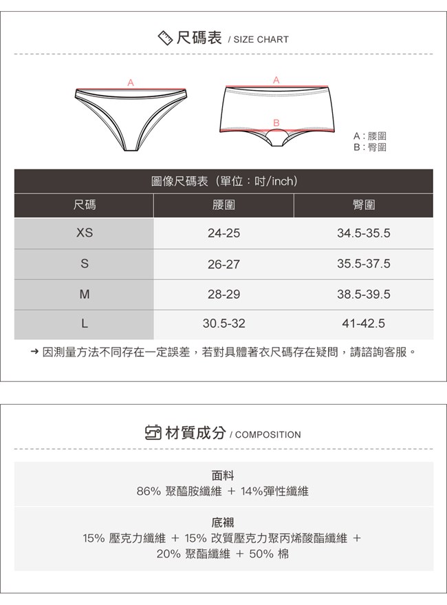 底襯採日本纖淨技術永久性銀離子殺菌,搭配除臭及吸濕排汗纖維,確保私密處乾爽舒適,無味無慮、無菌無憂。
