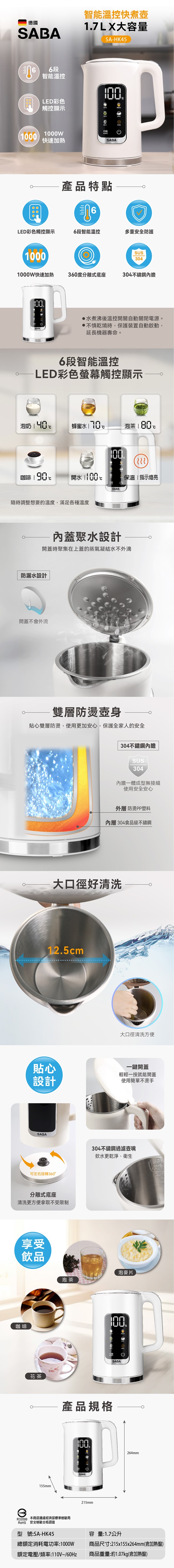 SABA 1.7L 智能溫控快煮壺 SA-HK45