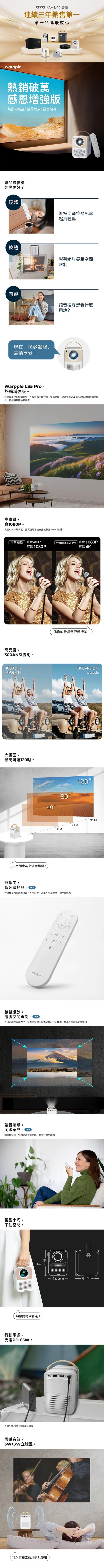 商品資訊:Warpple LS5 Pro*1 、藍牙語音遙控器*1、4號電池*2、電源供應器*1、電源線*1、使用說明書*1、四季線上30天*1、friDay影音30天*1