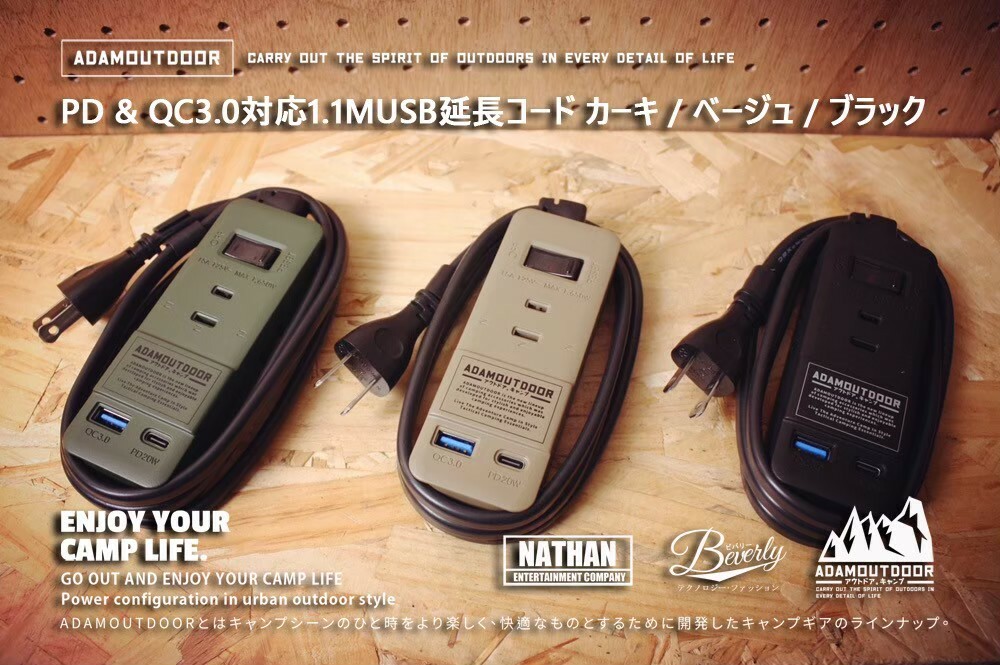 ADAMOUTDOOR|1.1M 3座擴充PD/QC USB延長線 |ADPW-CE23QP211