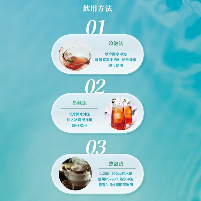 建議用量:以200-300C.C的水量沖泡,每日建議1-2包。