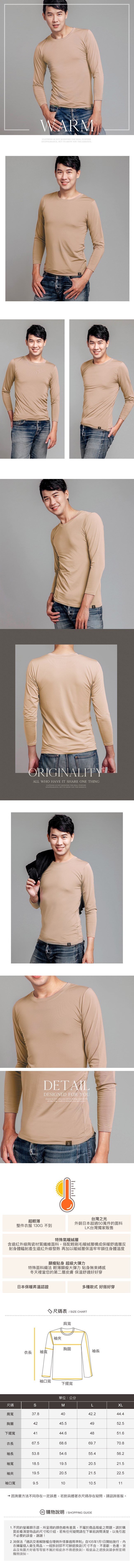 NEONER 男薄款圓領彈力氣暖絨保暖發熱衣-奶茶色-美
