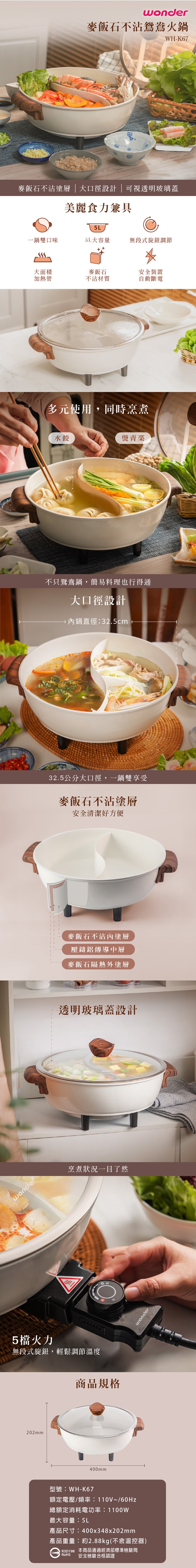 WONDER 麥飯石不沾鴛鴦火鍋 WH-K67