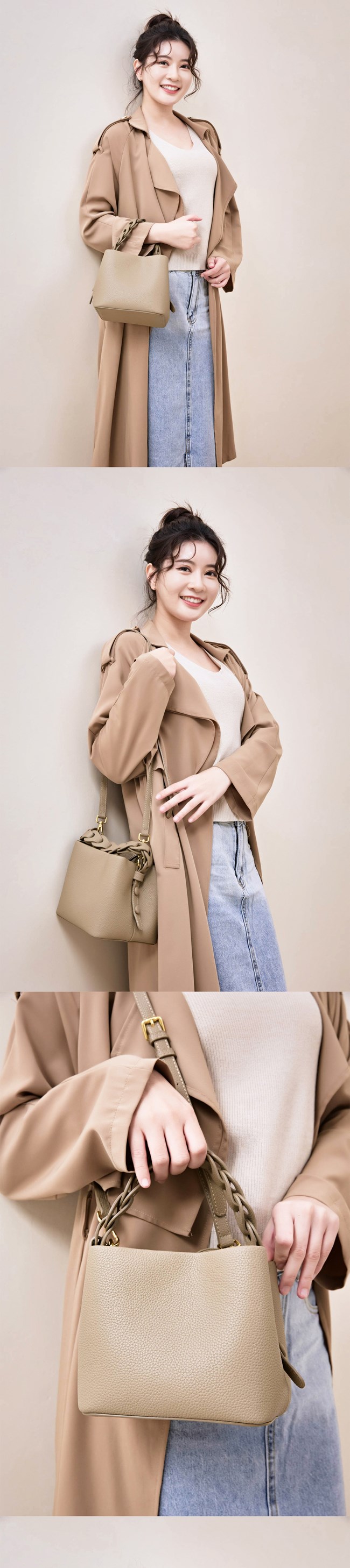 【L’eBeauty】植鞣細緻頭層牛皮水桶包 KDB-6715B(真皮/手提包/側肩包/斜背包/大容量)-美