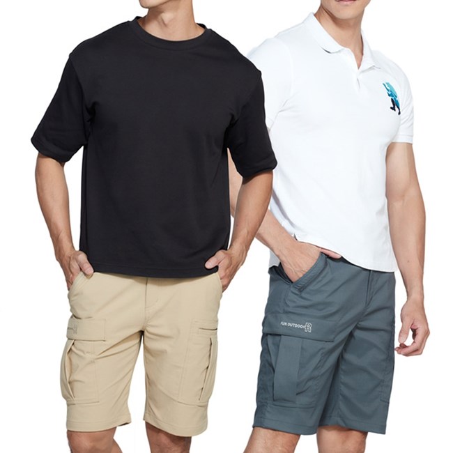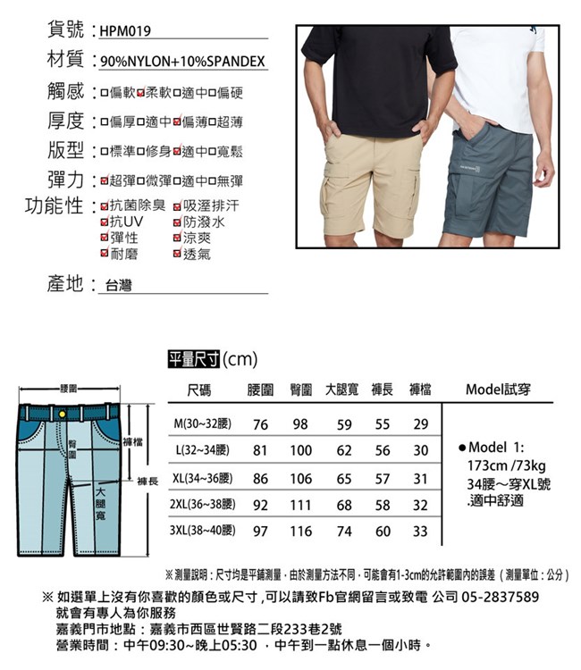 【戶外趣】 全新男款春夏防潑水彈性五分褲 二件組(HPM019)-美