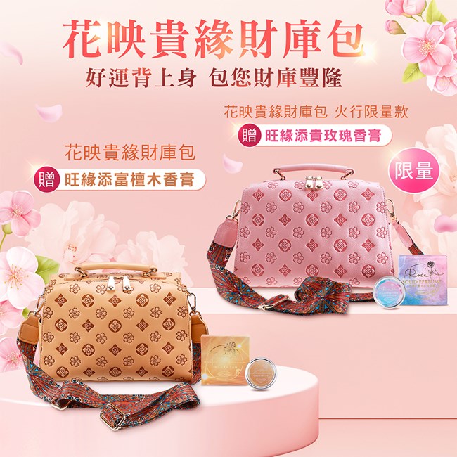 ◎雨揚老師特別設計了有火行能量的粉紅色來打造「花映貴緣財庫包-火行限量款」,背上您的行動小財庫,讓您在甲辰龍年,財庫有錢,豐隆財庫。