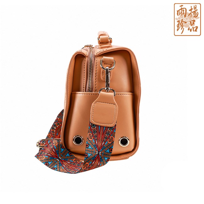 ◎揹帶上點綴著形似孔雀的幾何圖騰,象徵吉祥好運降臨,讓您在姻緣、職場及人際方面都有雀屏中選的幸運,另外加贈木行揹帶,以木生火、火生土、土生金,三才相生的能量,讓您財運能量加倍,更方便於日常的服裝色調搭配。