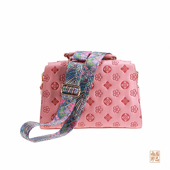 ◎「花映貴緣財庫包-火行限量款」採用讓人感到有活力、喜慶,以及可招來豐沛桃花人緣的粉紅色,來做火行財庫包的底色。