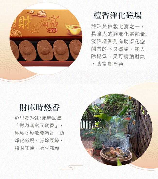 每日燃點「財溢滿富元寶香」,既除穢又可招財,圓滿財富心願、行運納財、好運隨身!