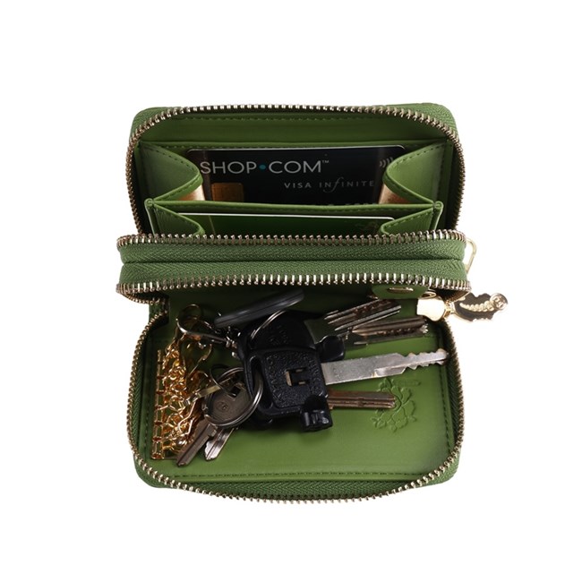 - 「飛躍滿祿鑰匙包」內層設有分隔式掛鉤,可將不同類型、用途的鑰匙分開存放,幫助我們分類及管理多種鑰匙,分割雙層設計,另一邊可用來放置信用卡或其它小卡。