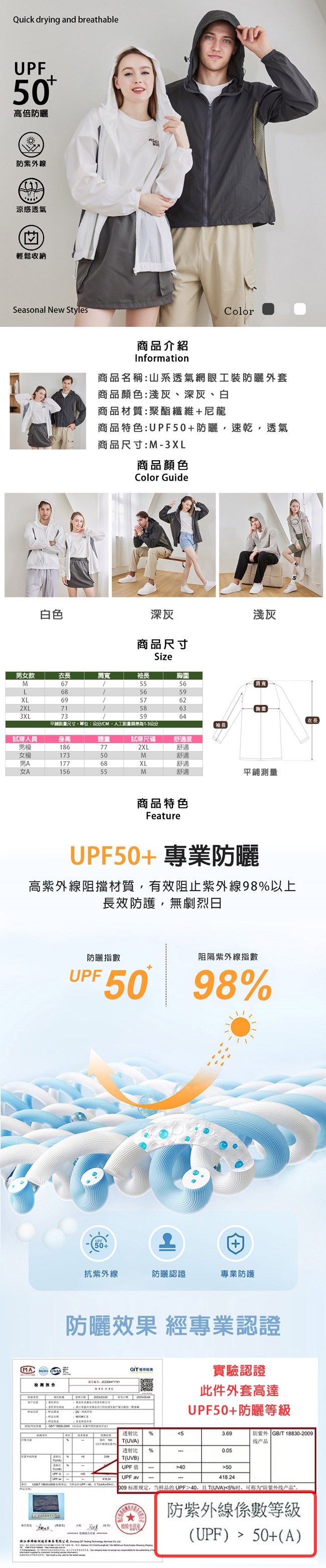 A級防曬,抗uv,輕薄透氣,不悶熱