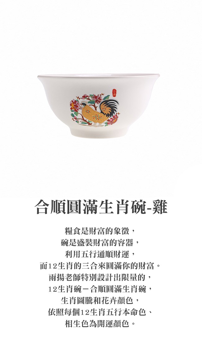 【雨揚珍品】十二生肖合順圓滿碗-雞 (十二生肖/五行相生/三合貴人/六合貴人/補足財富)