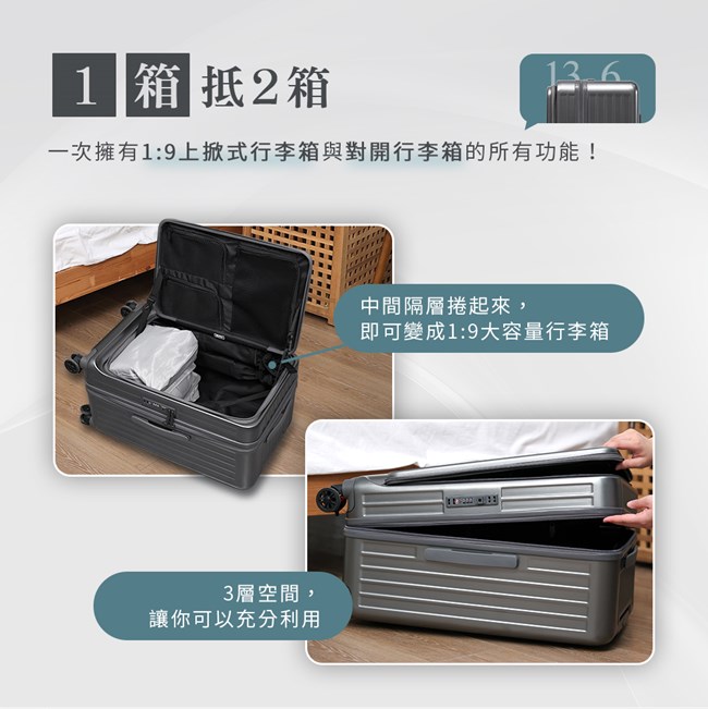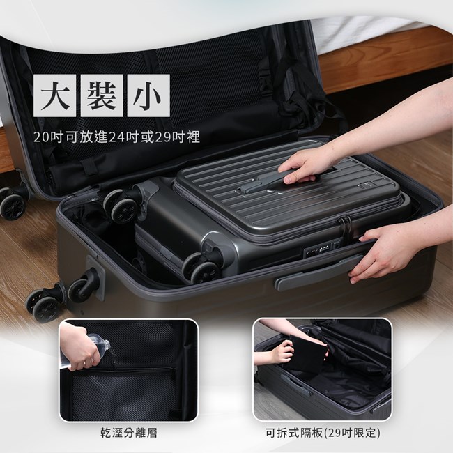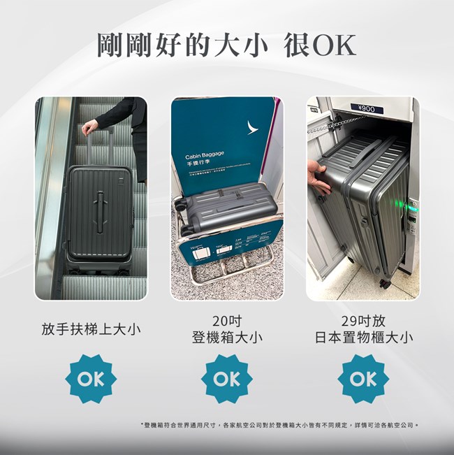 ・兼容上掀/對開雙開設計,20吋可收進24吋/29吋