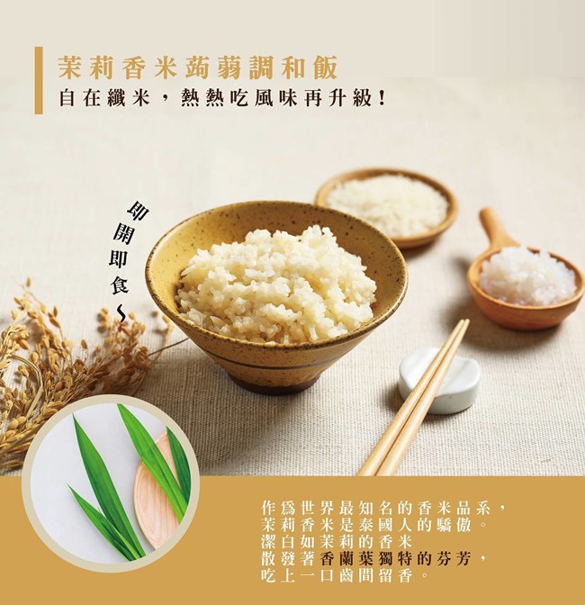 ✔️ 茉莉香米調和飯:潔白如茉莉,天然香蘭氣息撲鼻,泰國最知名香米代表。