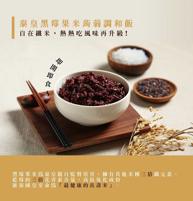 ✔️ 泰皇黑莓米調和飯:泰皇親自監督培育,花青素與鐵質是一般米種的3倍,是名副其實的「健康長壽米」。