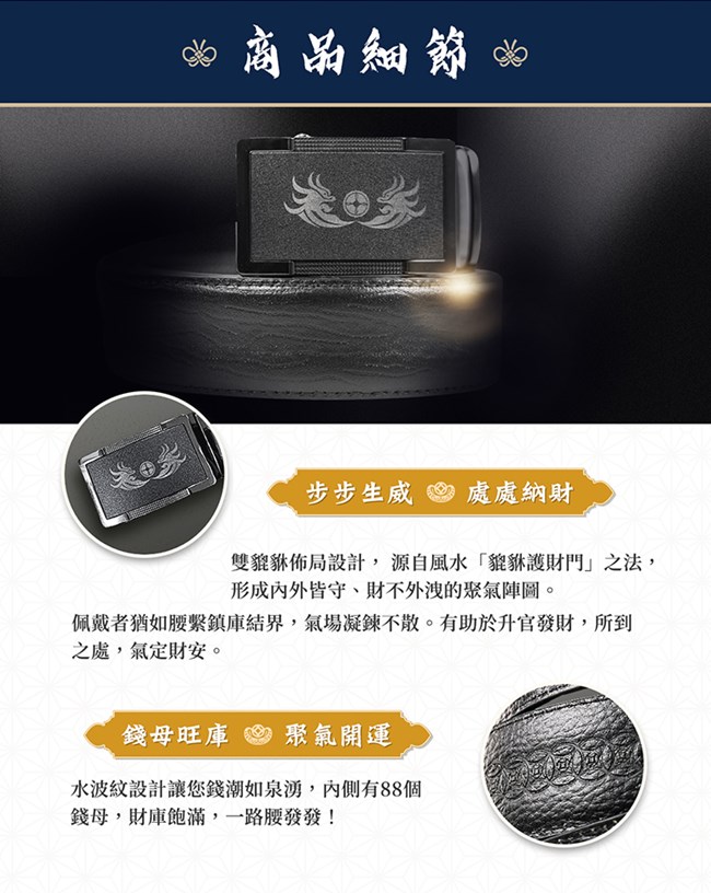 ★雨揚珍品-雙貔貅帝王尊榮黑皮帶。