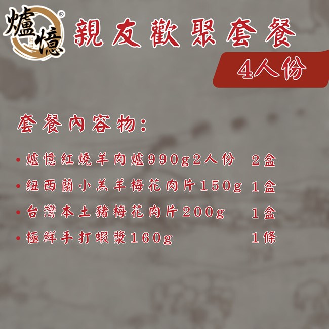 【爐憶】紅燒羊肉爐-親友歡聚套餐4人份(免運)-美