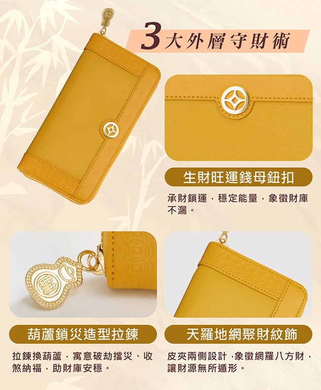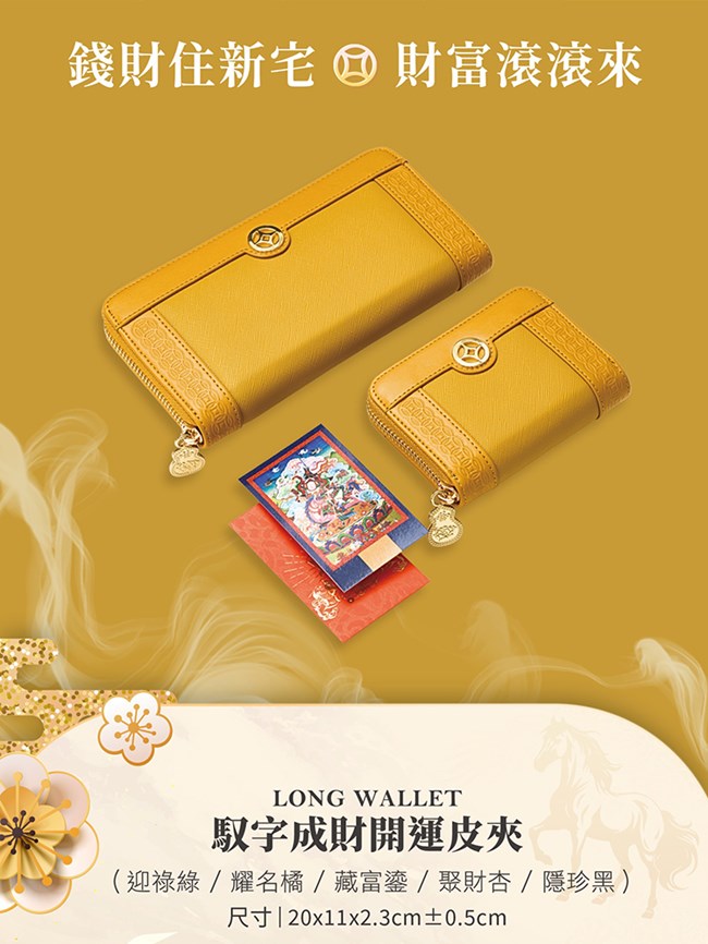 ◆隨身財庫長夾x1個 (綠色、橘色、黃色、杏色、黑色,擇一)。