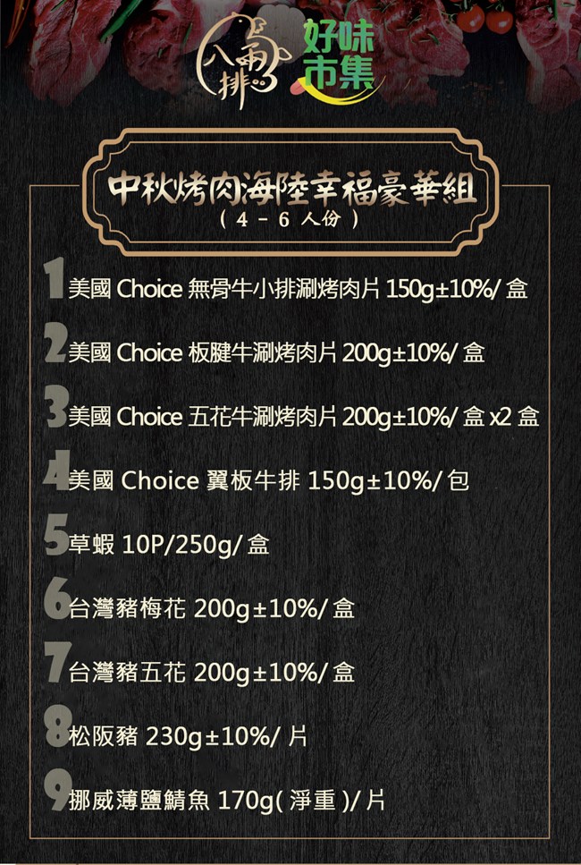 【八兩排】中秋烤肉海陸幸福豪華組4-6人