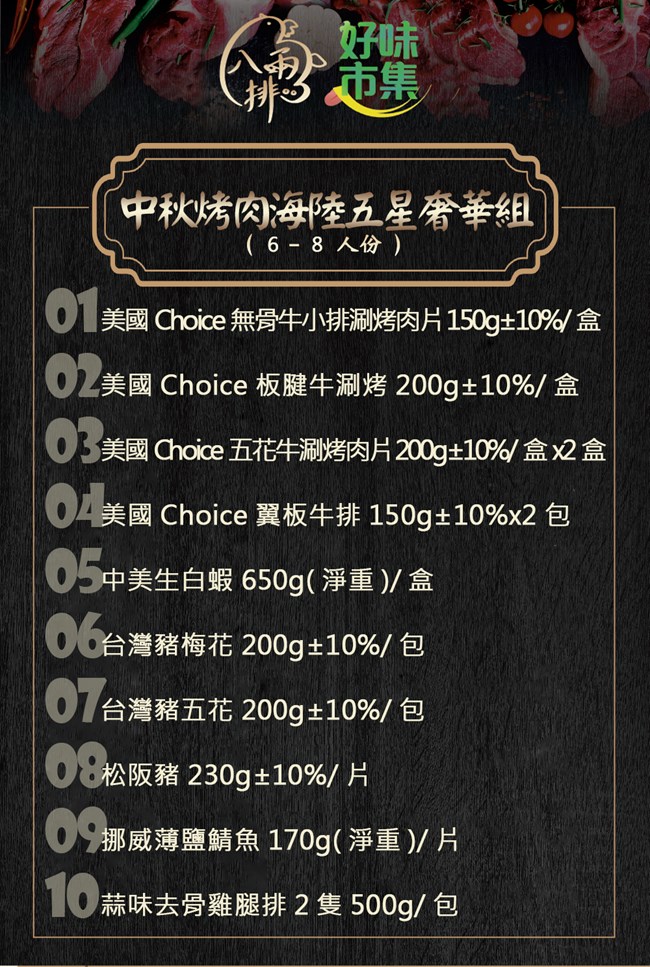 【八兩排】中秋烤肉海陸五星奢華組6-8人