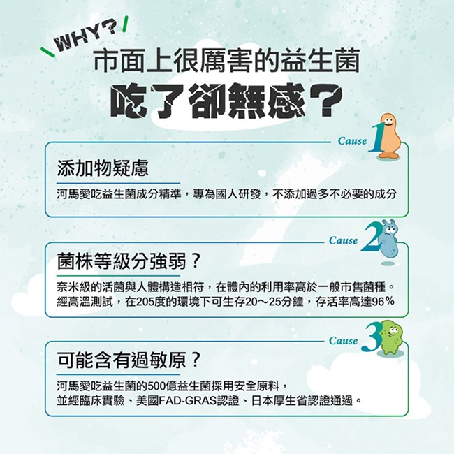 雙專利乳酸菌搭配500億高效奈米益生菌,耐胃酸、耐膽鹼,直達腸道,發揮最大作用!
