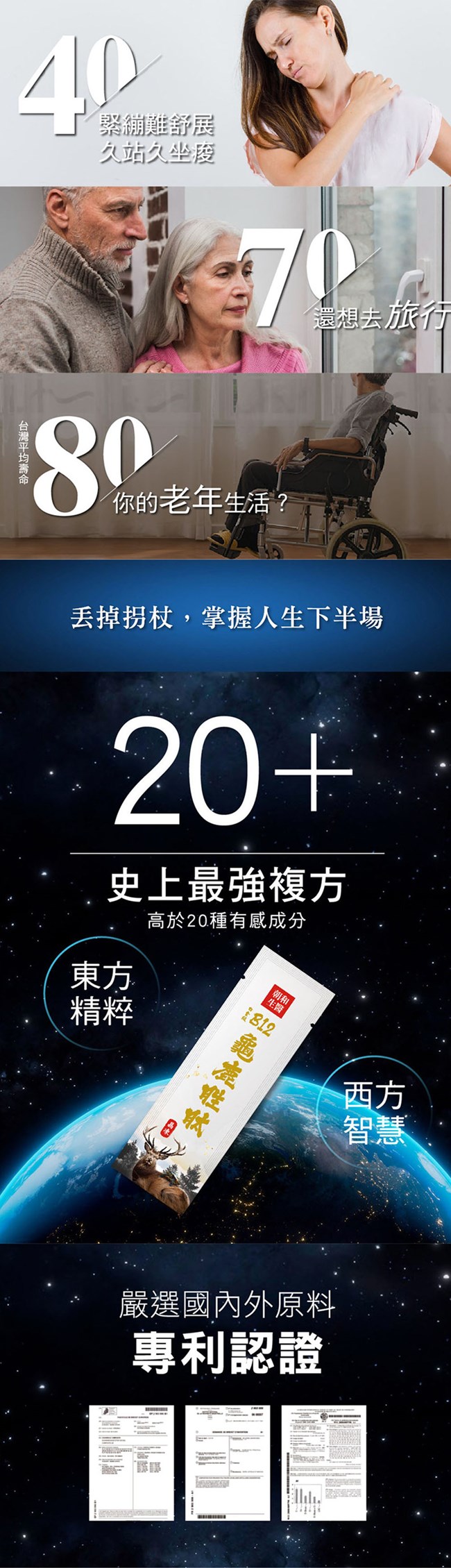 專利二型膠原蛋白、龜板、鹿角、鯊魚軟骨素、貓爪藤萃取物、余甘子萃取物
