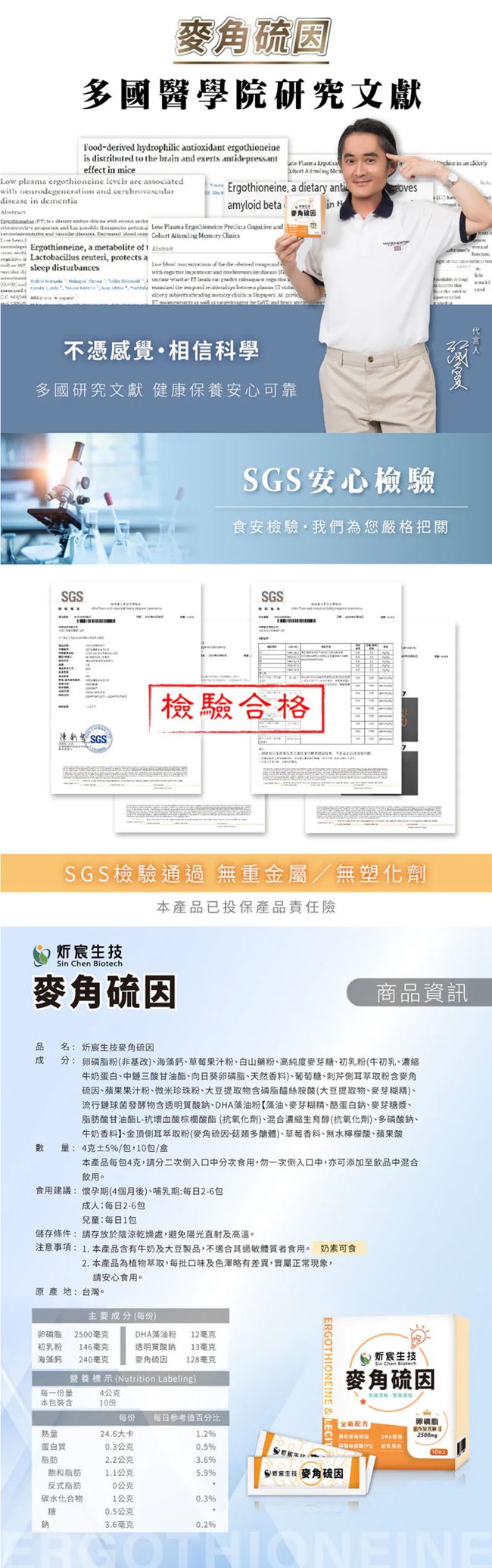 卵磷脂粉(非基改)、海藻鈣、草莓果汁粉、白山藥粉、高純度麥芽糖、初乳粉(牛初乳、濃縮牛奶蛋白、中鏈三酸甘油酯、向日葵卵磷脂、天然香料)、葡萄糖、刺芹側耳萃取粉含麥角硫因、蘋果果汁粉、微米珍珠粉、大豆提取物含磷脂醯絲胺酸(大豆提取物、麥芽糊精)、流行鏈球菌發酵物含透明質酸鈉、DHA藻油粉【藻油、麥芽糊精、酪蛋白鈉、麥芽糖漿、脂肪酸甘油酯L-抗壞血酸棕櫚酸酯 (抗氧化劑)、混合濃縮生育醇(抗氧化劑)、多磷酸鈉、牛奶香料】、金頂側耳萃取粉(麥角硫因、菇類多醣體)、草莓香料、無水檸檬酸、蘋果酸