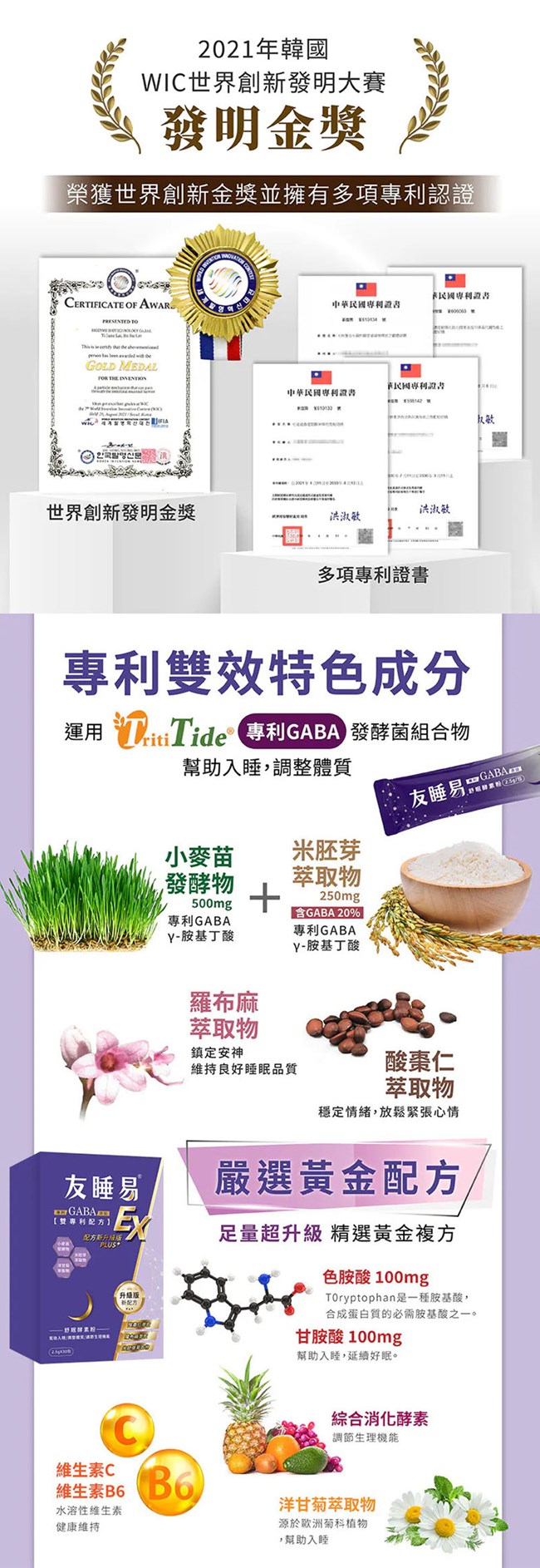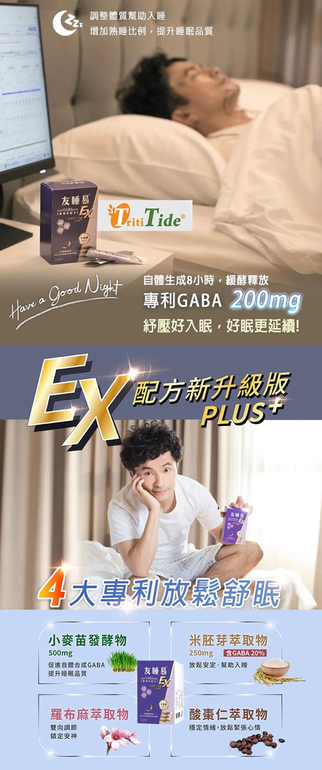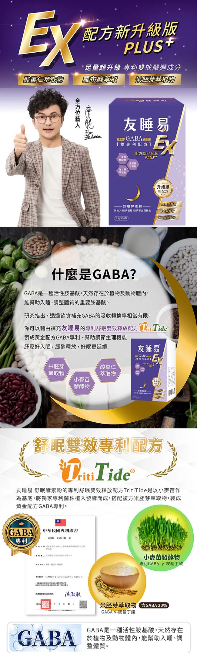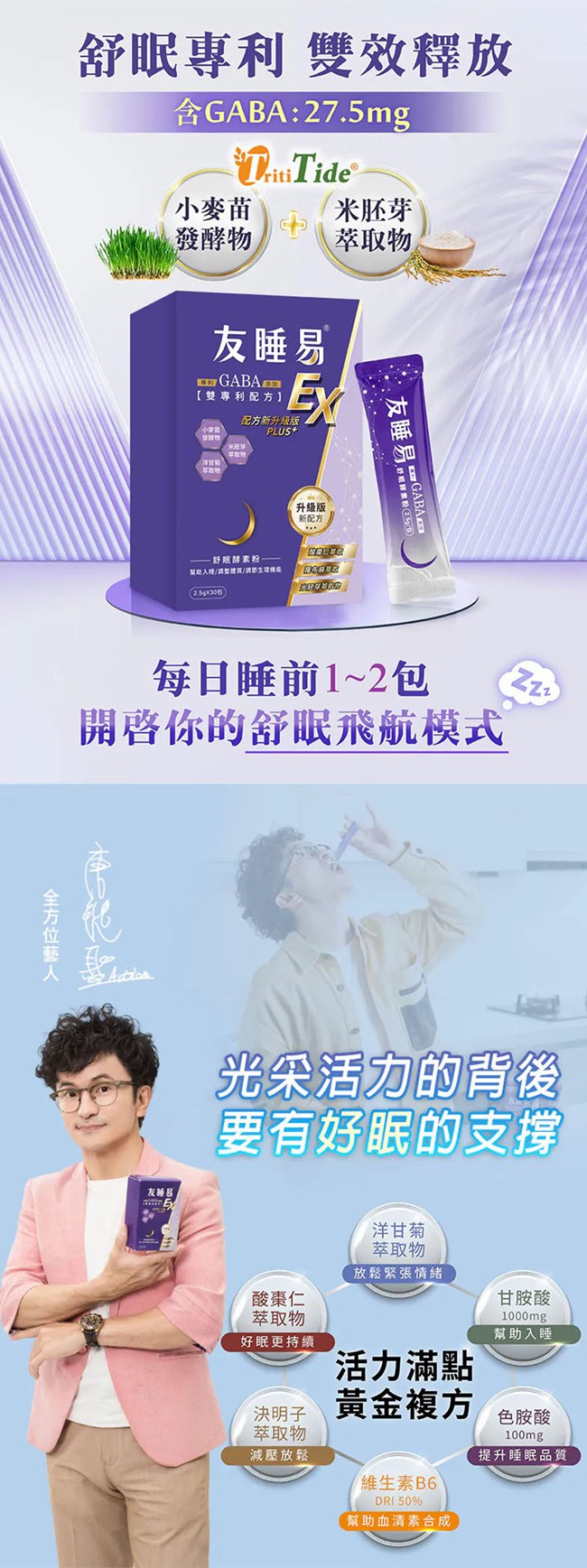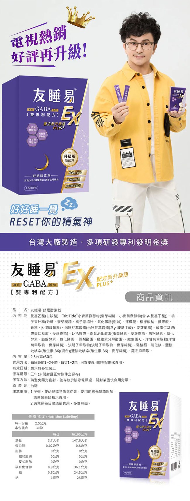 【友睡易EX】升級版全新配方-專利GABA舒眠酵素30包/組(一盒) / 唐從聖好眠代言