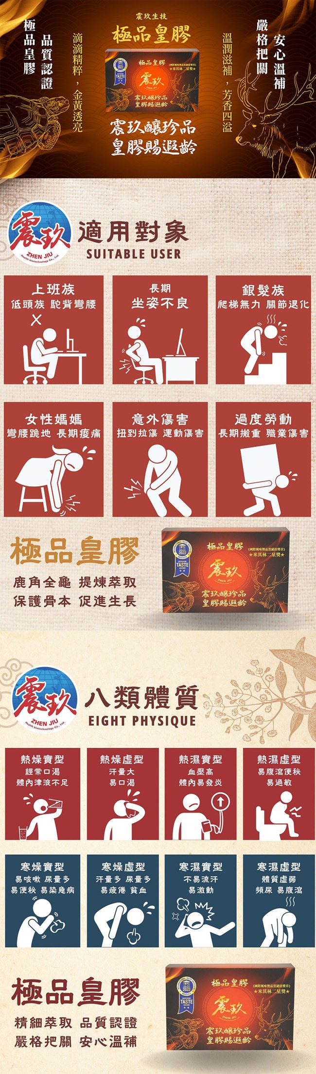 鹿角萃取,全龜萃取,膠原蛋白,枸杞子,黃精,人參花,紅棗