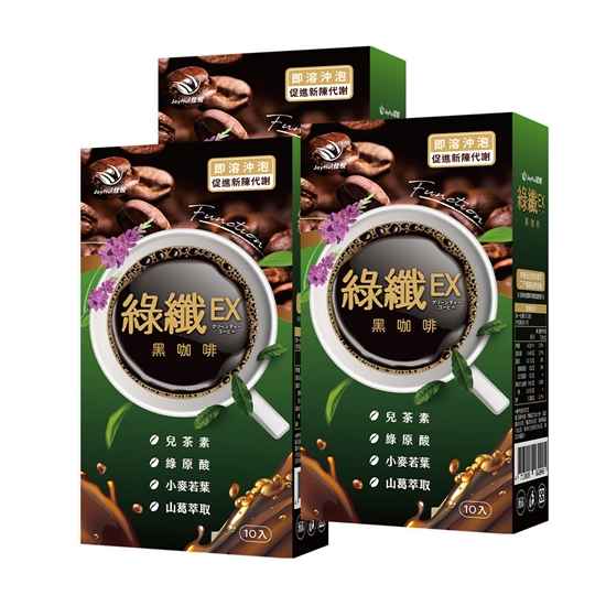 【JoyHui佳悅】綠纖EX代謝黑咖啡3盒(共30包、配方升級葛花+小麥若葉)
