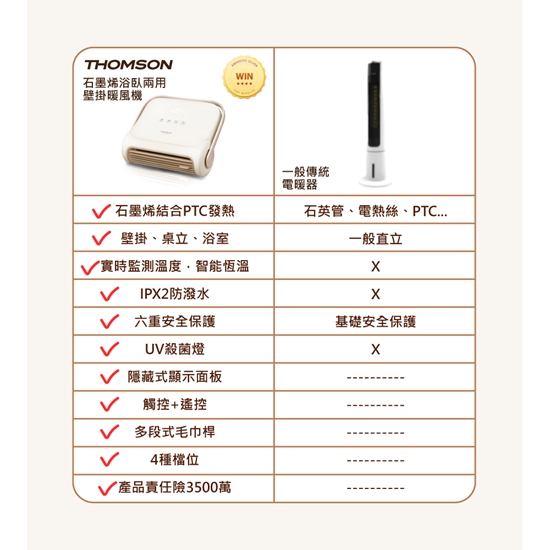 【THOMSON】WIFI石墨烯壁掛暖風機 TM-SAW35FW 奶茶白