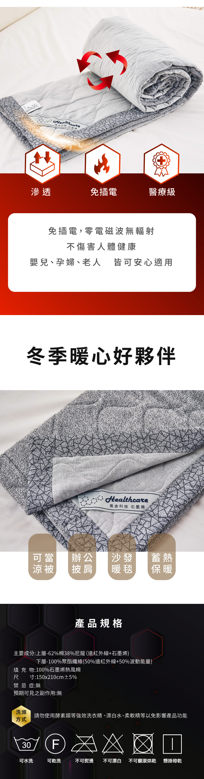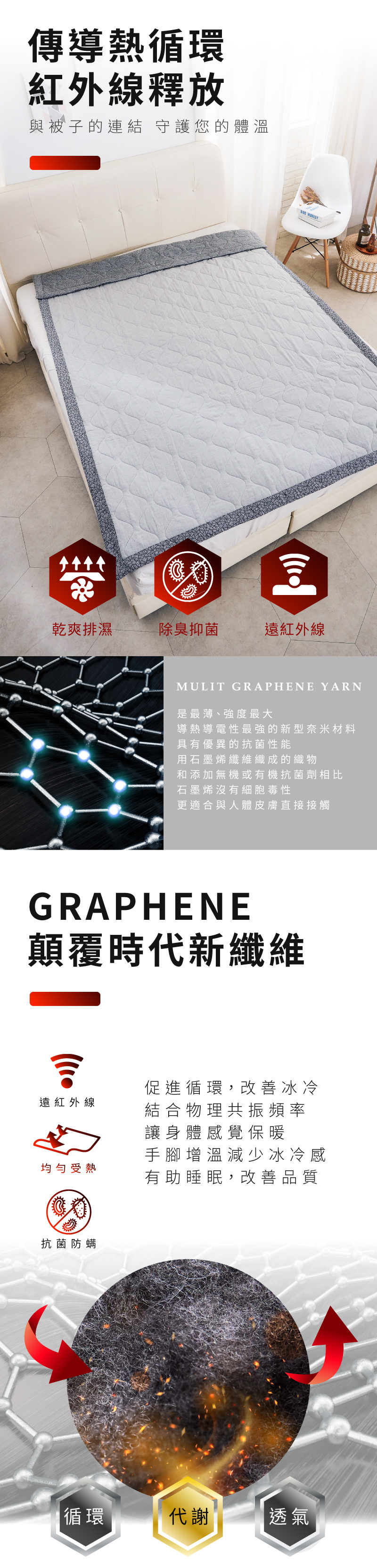 下層材質:100%聚酯纖維 (50%石墨烯50%波動能量)