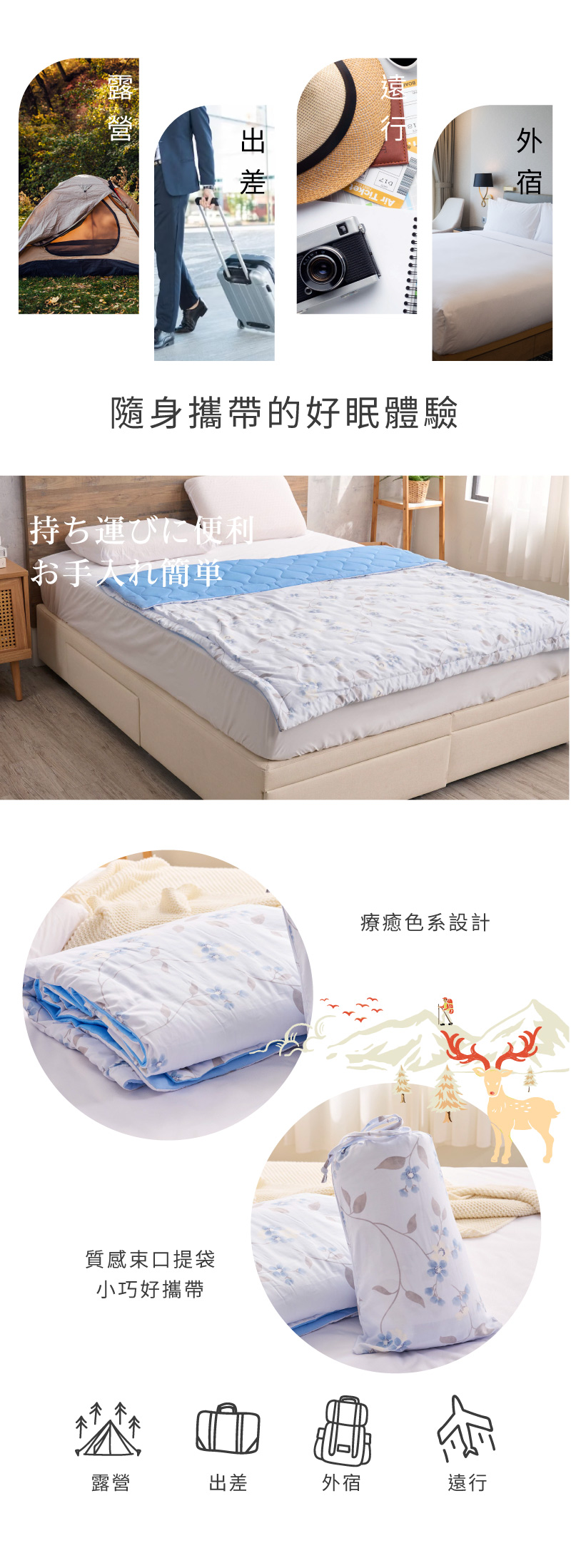 你的隨行涼被,輕盈柔軟,讓你在旅途中也能享受舒適的睡眠。