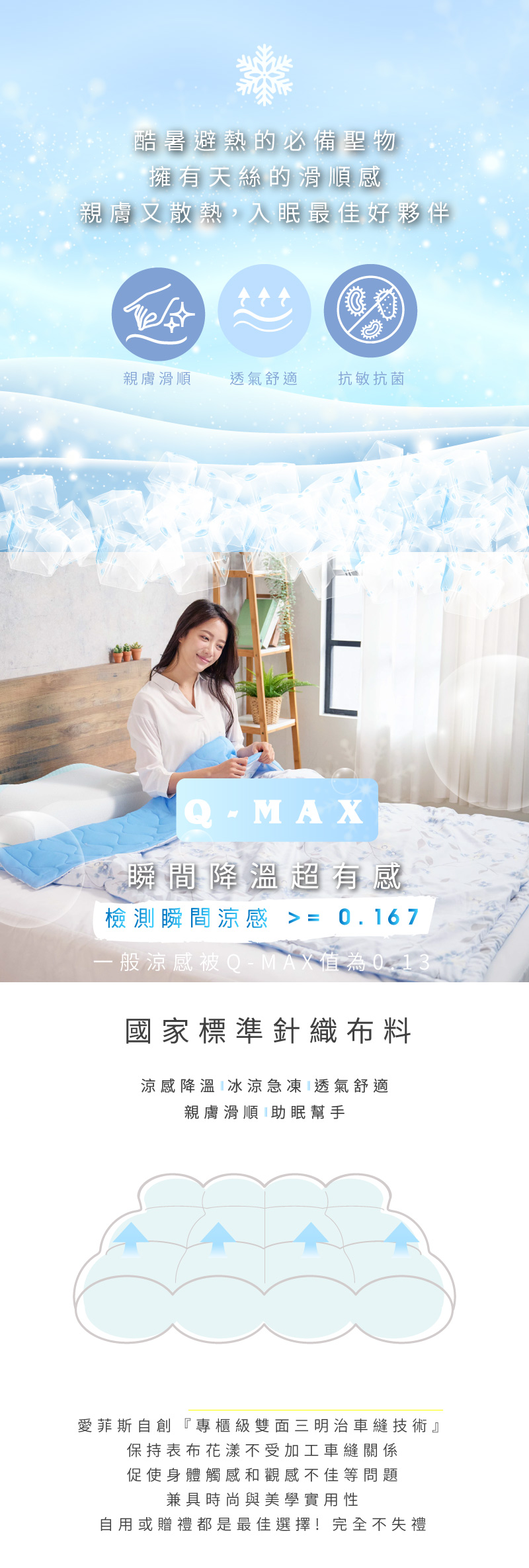 天絲冰涼被材質,讓你不再擔心炎熱的天氣。