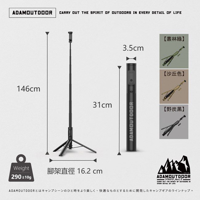 ADAMOUTDOOR|充電式極限彈射藍芽自拍棒