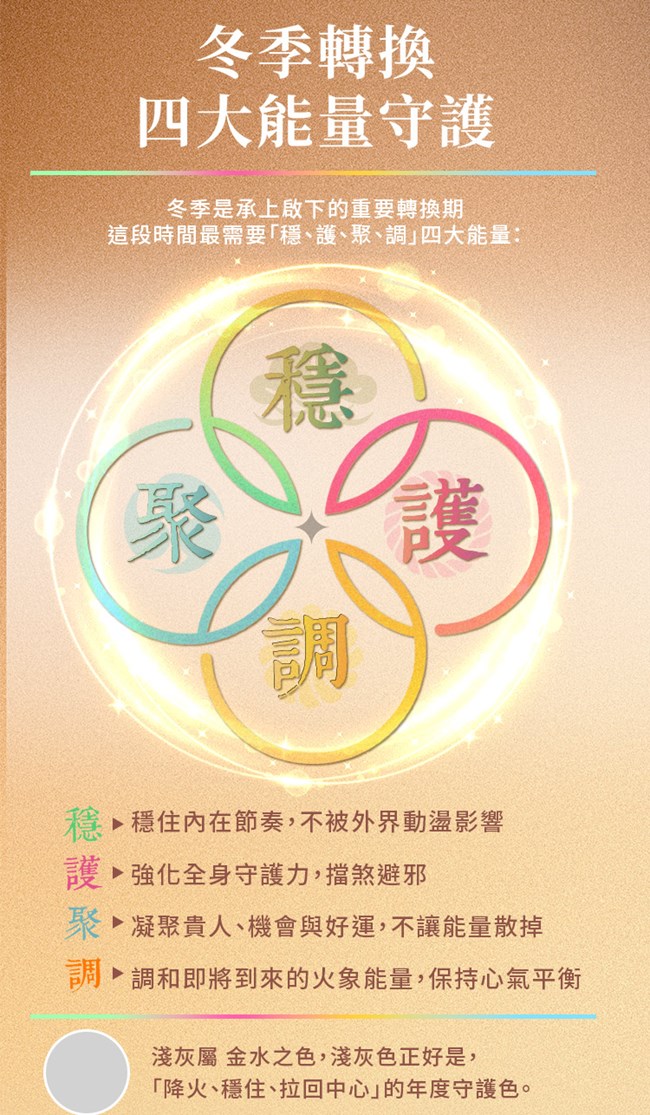 【開運方法】●每日穿著,可穩定氣場、提升內心安全感,有助於面對日常挑戰。●重要場合前穿著,可強化自信與貴人運,讓運勢順利,開啟貴人好運。●感到疲憊或情緒低落時穿著,有助調和氣場,增添正面能量。●可搭配靜心冥想時穿著,進一步提升能量防護效果。