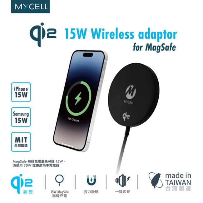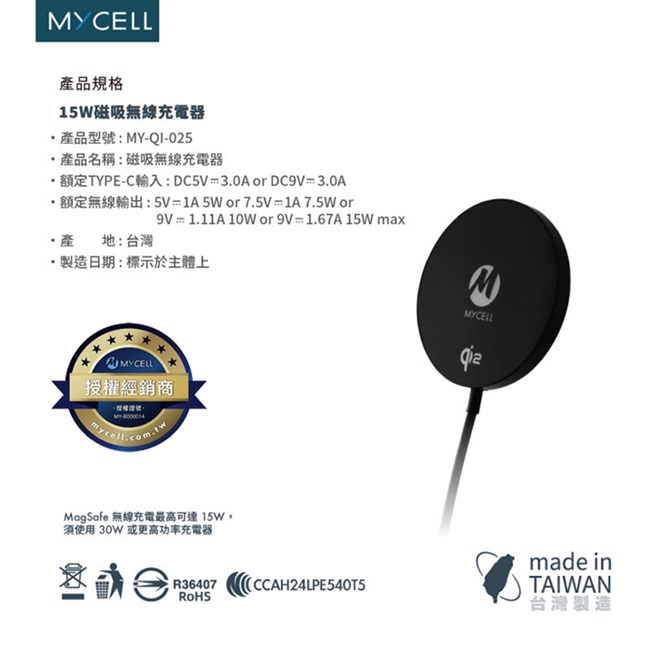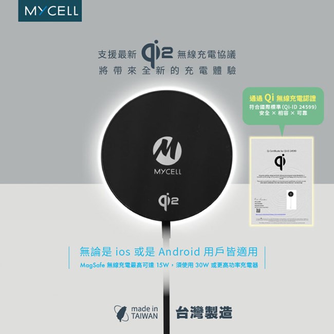 【MYCELL】Qi2認證 台灣製造15W無線充電器 / MY-QI-025