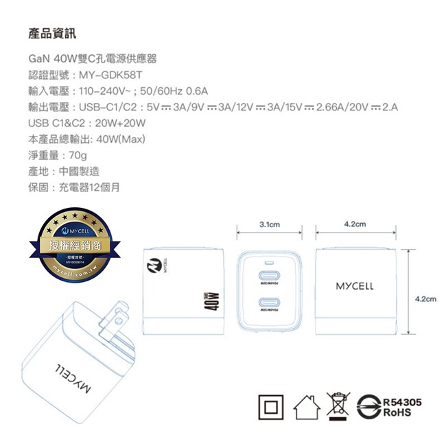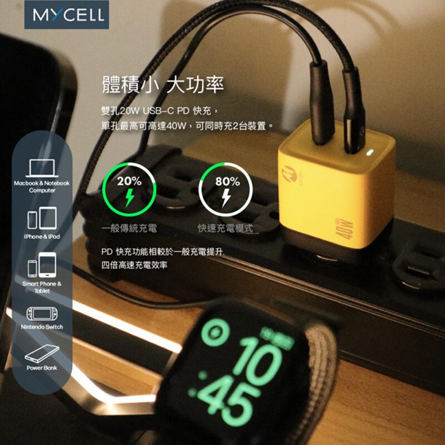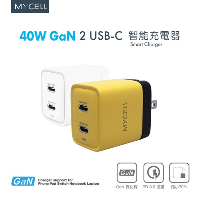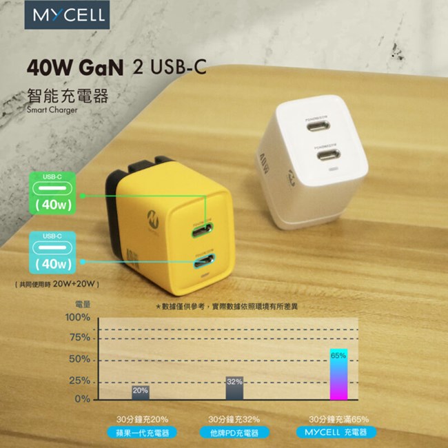 【MYCELL】40W GaN 2 USB-C氮化鎵智能充電器 / MY-GDK58T