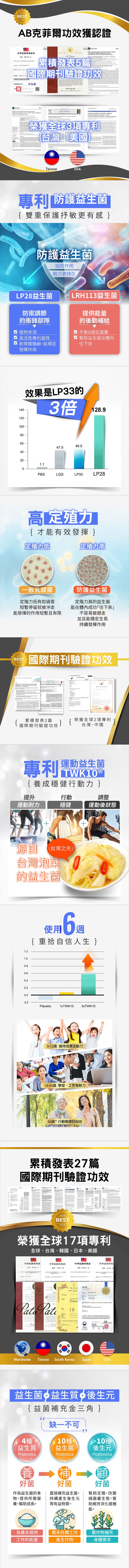 成 分:果寡醣粉(非基改玉米澱粉、果寡醣)、乳酸菌 (Lactobacillus plantarum LP28, Lactobacillus fermentum LF26, Lactobacillus paracasei LPC12, Lactobacillus rhamnosus LRH10, Lactobacillus helveticus LH43, Streptococcus thermophilus ST30, Lactobacillus plantarum TWK10, Bifidobacterium longum BL986, Lactobacillus acidophilus LA1063, Lactobacillus rhamnosus LRH113)、木寡糖、菊糖、玉米來源可溶性纖維