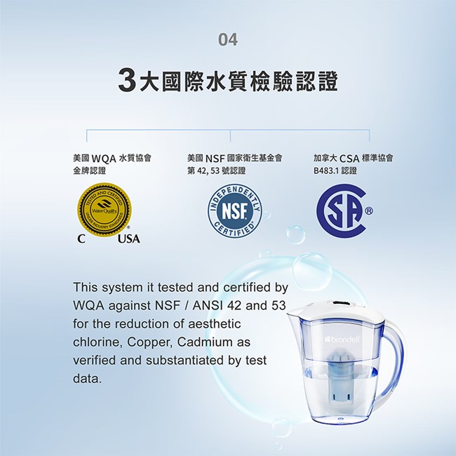 ✔ 國際認證濾淨實力|WQA金牌水質認證