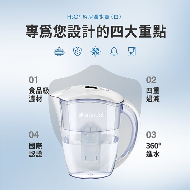 【brondell】美國邦特爾 純淨濾水壺(白)+2入全效濾芯(1壺2芯)