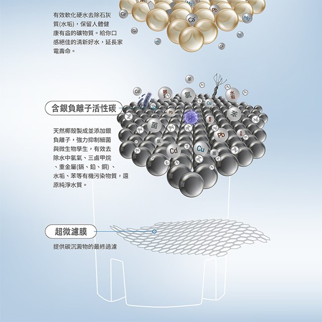 ✔ 含銀活性碳抑菌濾材|抑制細菌孳生提升水質安全